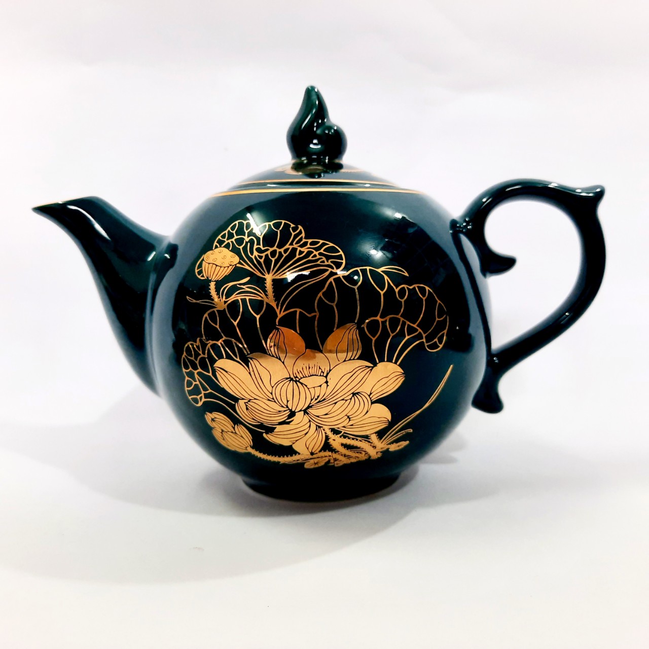 BỘ ẤM CHÉN VẼ VÀNG 24K VỚI HỌA TIẾT HOA SEN