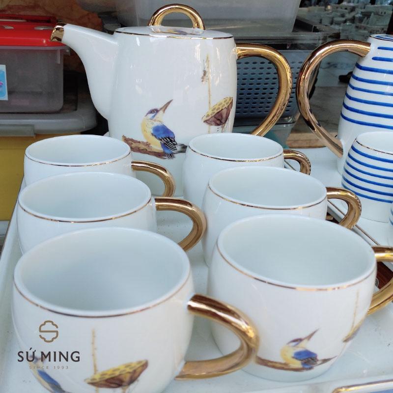 Bộ ấm chén được cấu tạo từ gốm sứ cao cấp, mang lại sự tinh tế, sang trọng.