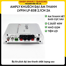 Mô tả sản phẩm Bộ Âm Ly Mini, Amply Khuếch Đại Âm Thanh 838 2.1CH Đây là bộ âm ly mini LP-838 thiết kế rất gọn gàng và chỉ cần nguồn 12V nhưng amply lại