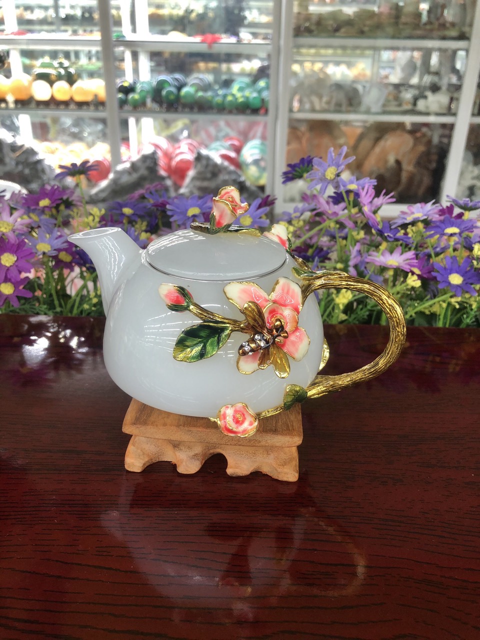 Bộ ấm trà bạch ngọc hoa mai