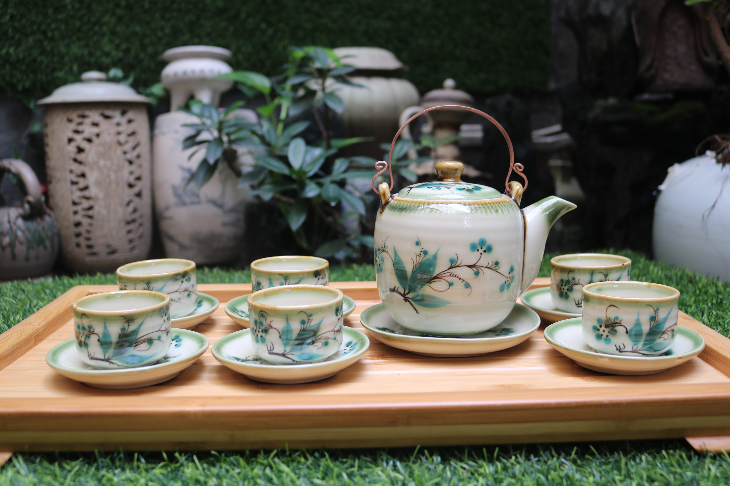 - Bộ Trà Nhánh Trúc Gốm Sứ Bát Tràng T548C - Gốm sứ nung ở nhiệt độ > 1300 độ C. - Sản phẩm xuất xứ Bát Tràng - việt Nam. - Dòng men trắng