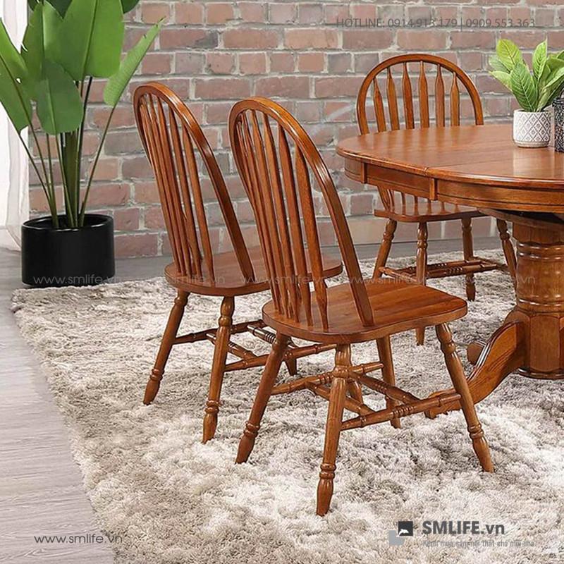 Bộ Bàn Ăn Oval 6 Ghế Thọ Lệch Gỗ Sồi Nga