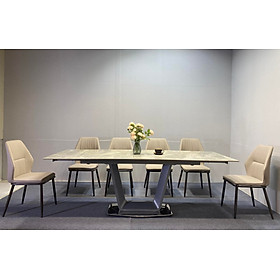 ✨Bộ bàn ghế phòng ăn Tundo mặt đá ceramic, chân inox mạ titan kèm 6 ghế kevin