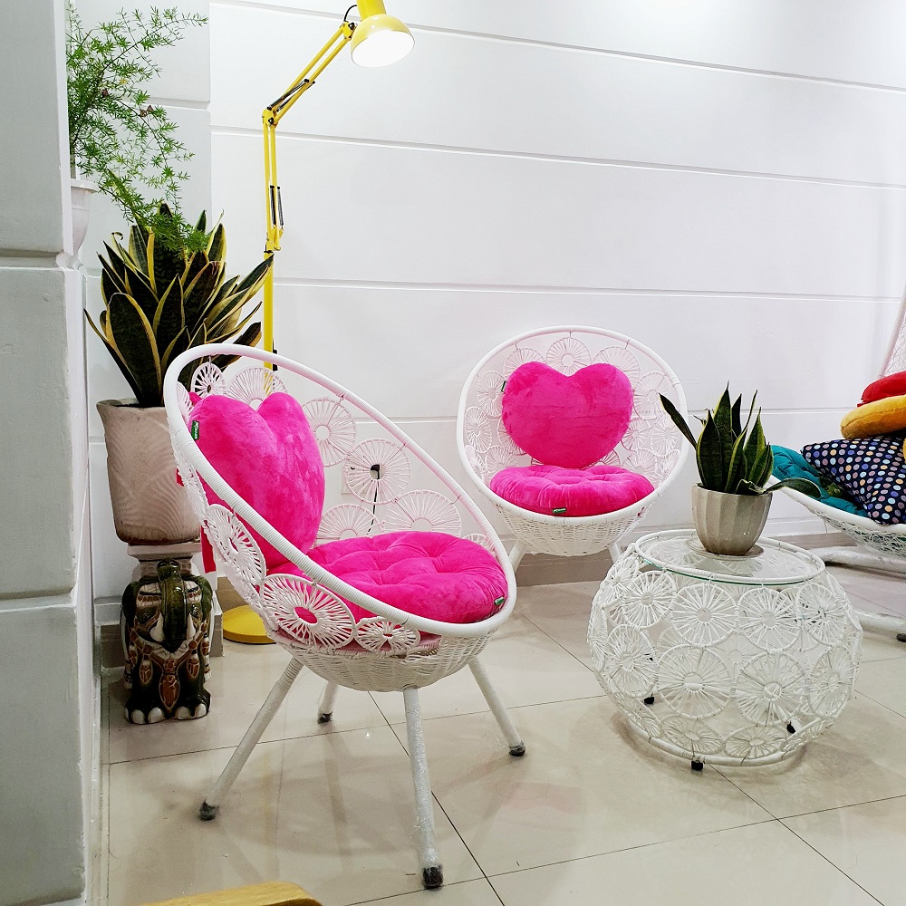 Mua tại TiktokBộ sản phẩm gồm : 01 bàn kính + 02 nệm ghế như hình màu sắc như hình Tính thẩm mỹ được khẳng định rõ nét trong không gian ngôi nhà của bạn. Bạn được tận dụng cảm giác giãn thật sự mỗi khi cùng nhau nghỉ ngơi sau những giờ làm việc căng thẳng Ghế ngoài trời cao cấp là giải pháp lý tưởng về cách thức trang trí sân vườn, cảnh quan sống hiện đại. Hãy để Navicom đồng hành cùng bạn trong quá trình kiến tạo không gian sống sang trọng, tiện nghi và thoải mái nhất. Chất liệu Khung Sắt + mây PE+ Gối vải Gối vải màu sắc ngẫu nhiên Kích thước ghế: 700 x 700 x 800 mm Kích thước bàn: 550 x 550 x 420mm Chất liệu: Sắt đặc sơn tĩnh điện, dây vinyl nguyên sinh Tạo cảm giác êm ái, sảng khoái cho người sử dụng