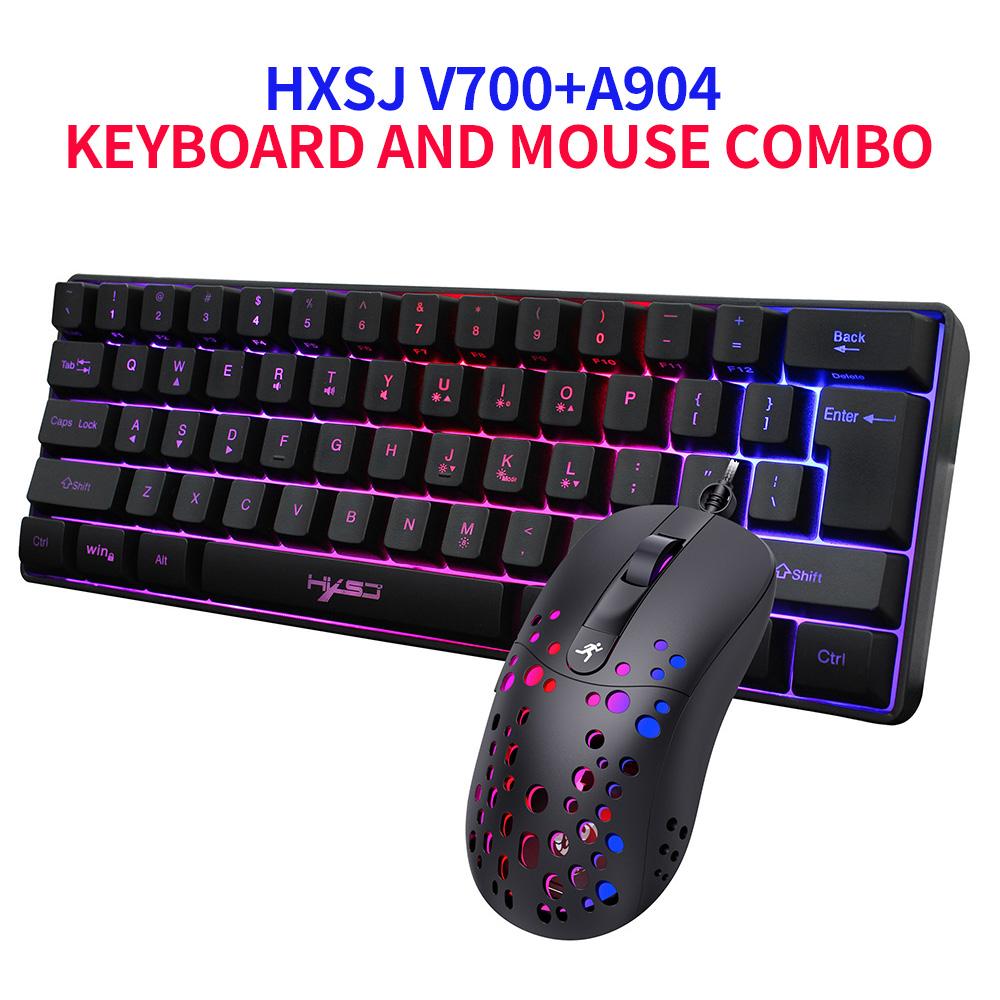 ✨Bộ bàn phím và chuột có dây HXSJ V700 61 phím lập trình macro A904 RGB cho PC