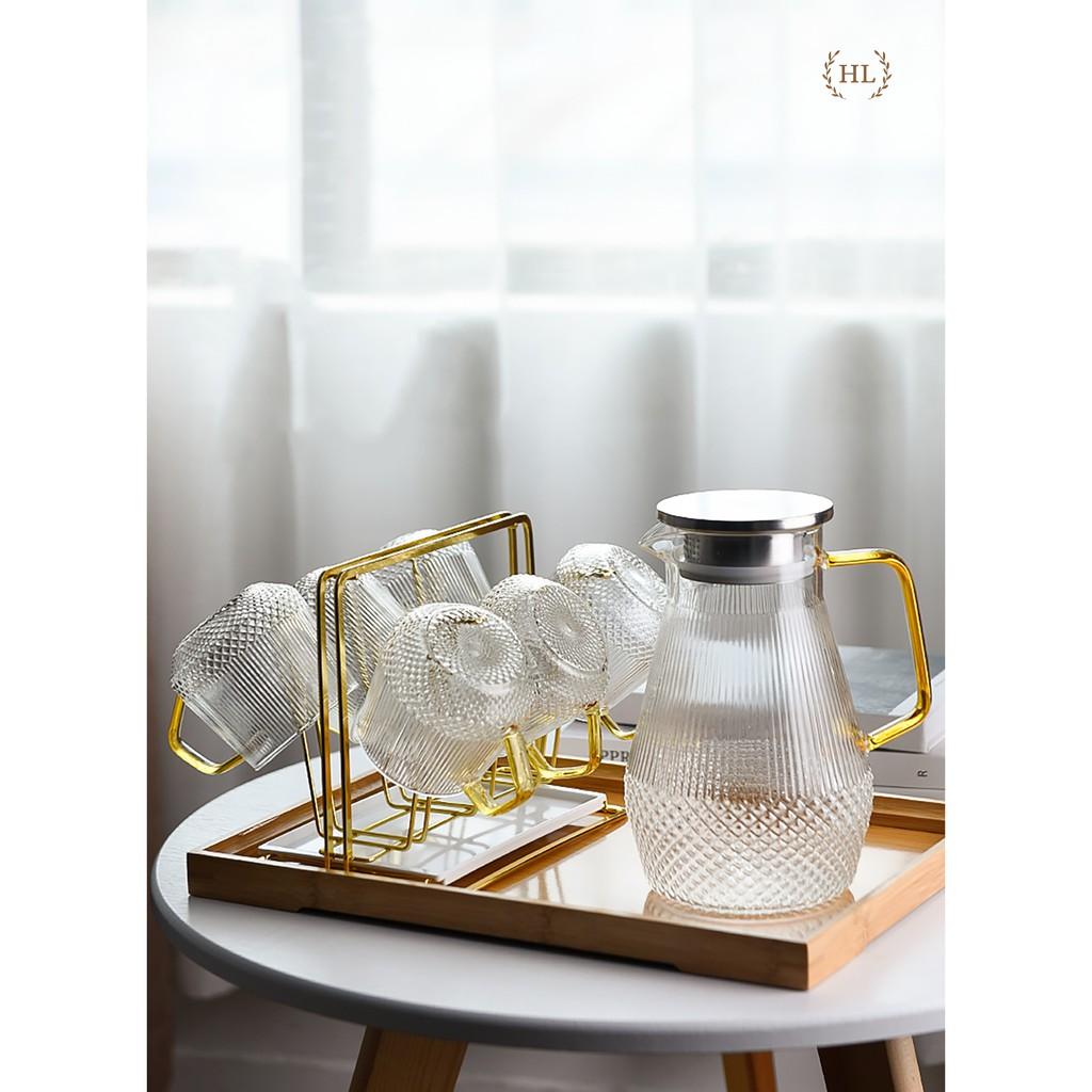 SET BÌNH CỐC THỦY TINH KÈM KHAY DECOR | BỘ BÌNH CỐC THỦY TINH KÈM KHAY SANG CHẢNH DECOR PHONG CÁCH RETRO Phong cách Retro thường có cảm giác như một tác phẩm nghệ thuật