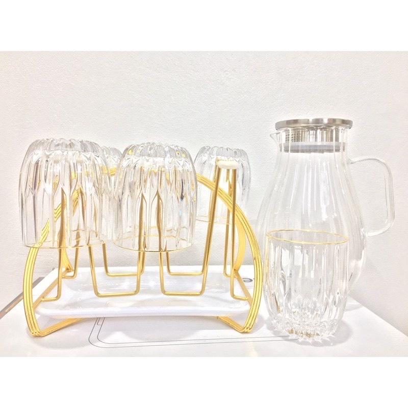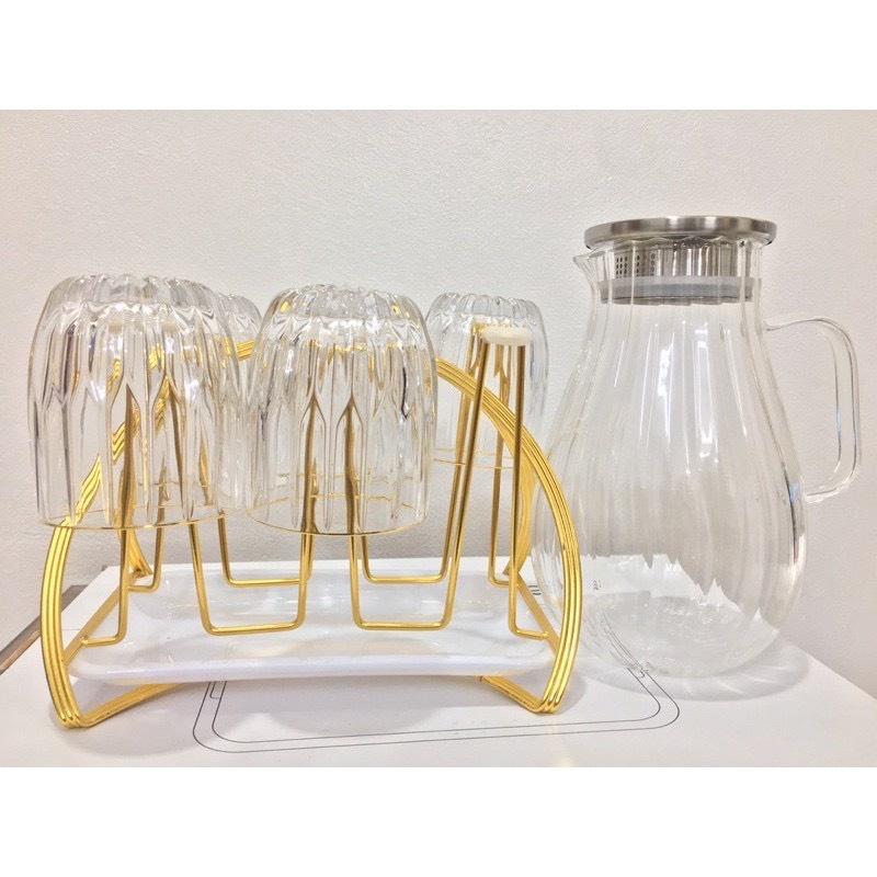 ✨Bộ bình đựng nước uống kèm 6 cốc thủy tinh chịu nhiệt cao cấp lên tới 400 độ c kèm giá úp cốc