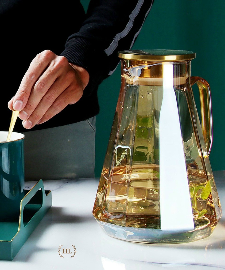 Bộ bình 6 cốc thủy tinh chịu nhiệt mạ vàng cao cấp