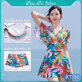 ✨Bộ bơi liền thân nữ dáng váy quyến rũ, thun bơi đẹp co giãn 4 chiều thoáng mát, áo có sẵn gọng đệm, tôn dáng giấu bụng tốt | KT180