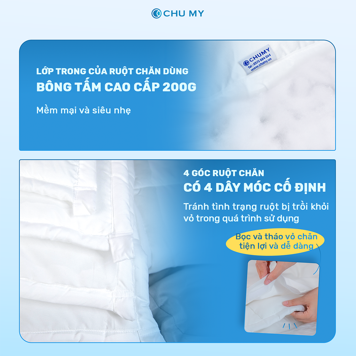 - 1 ruột chăn kích thước 200 x 220 cm