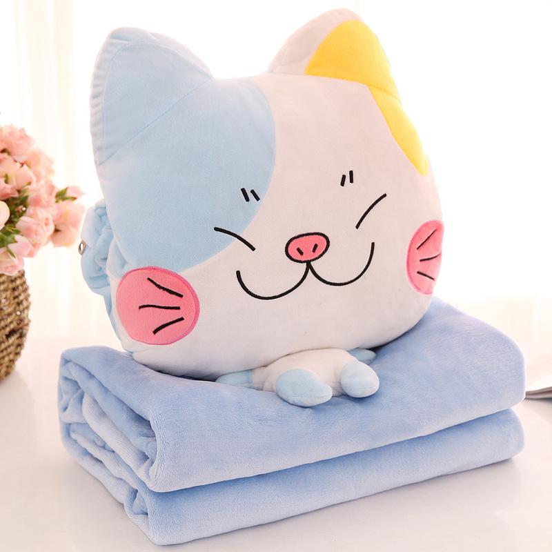 Set chăn gối văn phòng 2 in 1 hình mèo dễ thương, bộ chăn mền kèm gối ngủ trưa đi ô tô xe hơi