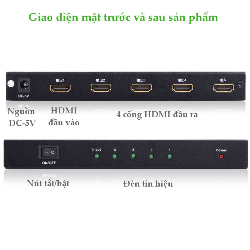 - Cổng đầu vào: 1x HDMI vào (Loại A connector), Cổng ra: 4 cổng HDMI âm