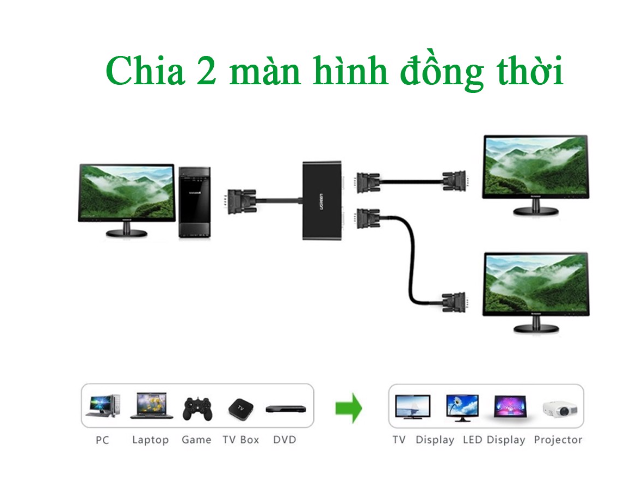 ✨Bộ chia VGA 1 ra 2 Ugreen 20918 - Hàng chính hãng