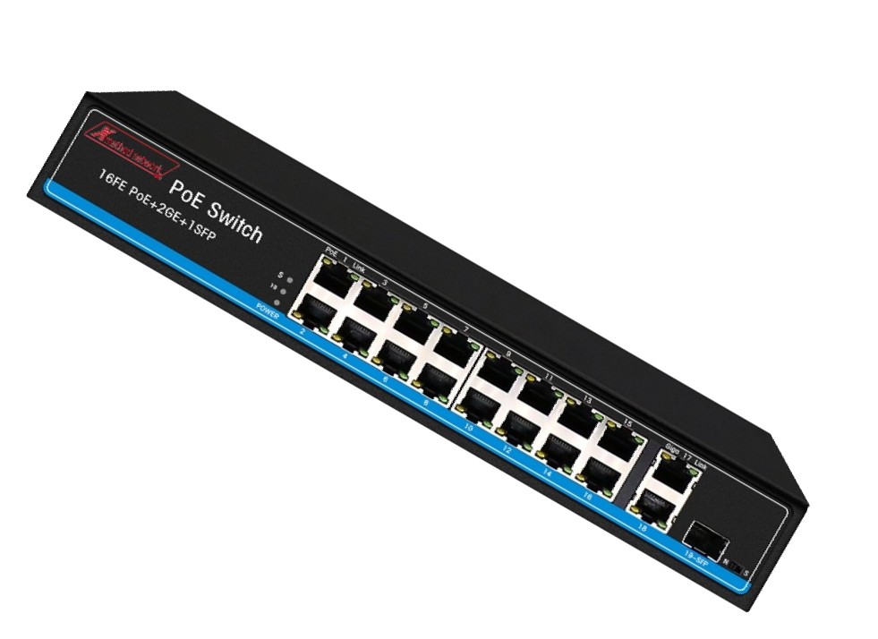 Mua tại Tiktok19 port unmanaged switch, 16 port FE PoE, one port supports 60w, 2 x Gigabit, 1 SFP, 315 w power supply