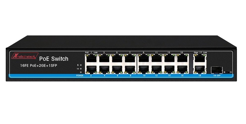 ✨Bộ chuyển mạch 19 port unmanaged Ethernet Switch, 16 FE PoE, 2 Gigagit, 1SFP, 300w power supply - Xmethod Network - Hàng chính hãng