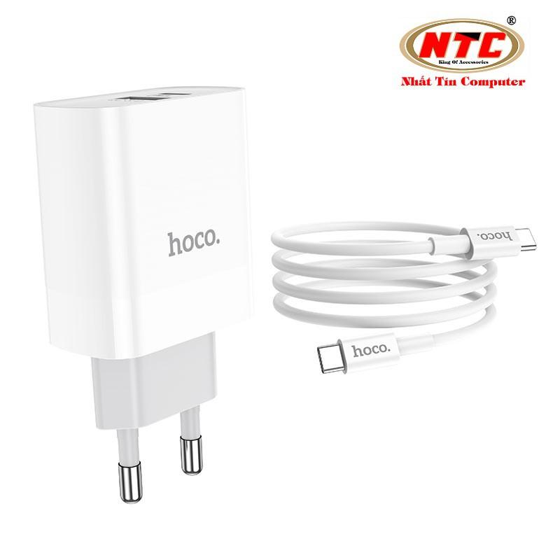 ✨Bộ Cốc sạc 2 cổng USB và PD kèm Cáp sạc Type-C to Type-C dành cho Hoco C80A QC3.0 và PD20W (Trắng) - Hàng Chính Hãng