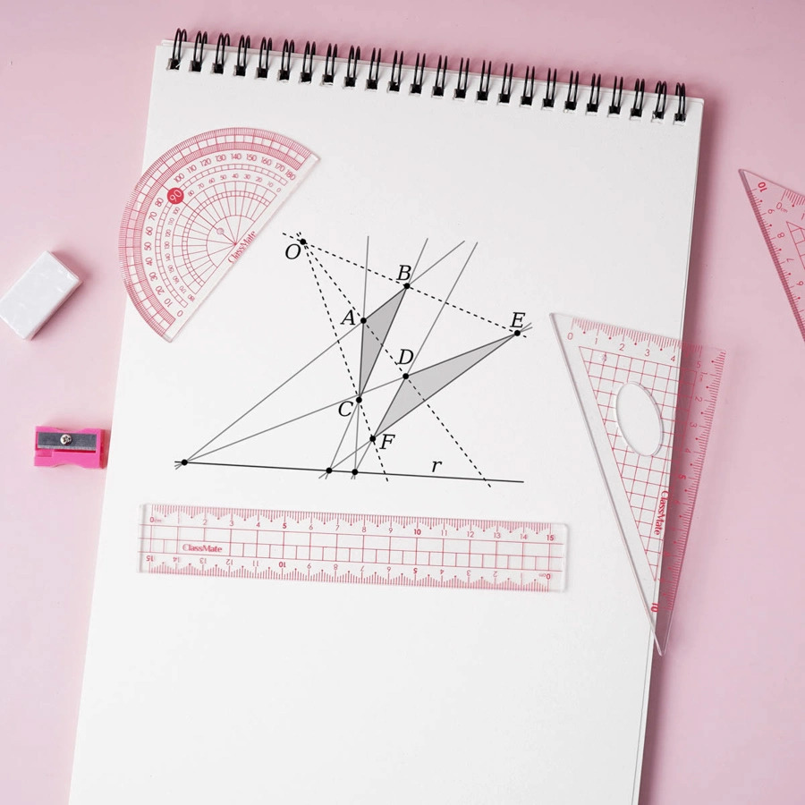 Bộ Thước Kẻ Đa Năng Dễ Sử Dụng Xoay 360 Độ: Màu sắc: Trong suốt Kích thước: 8.4 x 21.7cm - Thước đa năng vẽ được hình tròn, hình chữ nhật và hình tam giác,