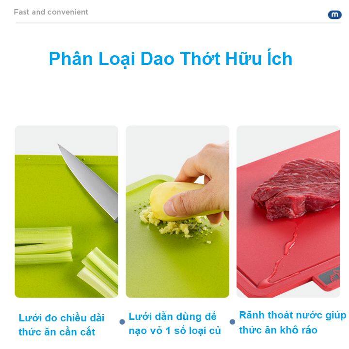 - Không còn tình trạng thức ăn bám trên thớt gỗ khó rửa, dùng cắt chung ẩn chứa nhiều vi khuẩn.