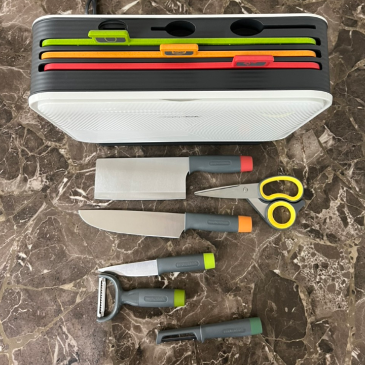- Bộ dao thớt chuyên nghiệp: Dùng phân loại thực phẩm sống, chín dễ dàng.