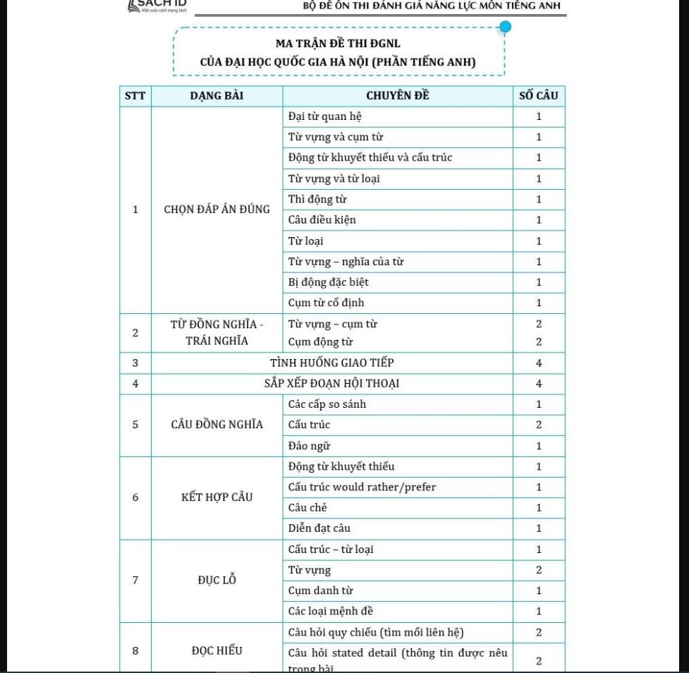 Phần 1: Cung cấp ma trận đề thi ĐGNL của ĐHQG HCM, ĐHQG HN và ĐHSP HN.