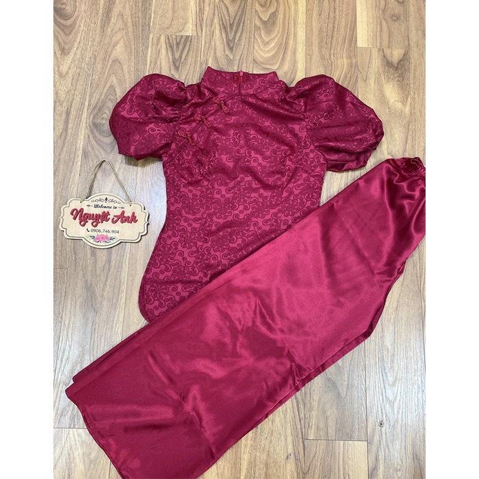 - Áo thiết kế cổ trụ tay phồng trang trọng kính đáo họa tiết gấm nổi sang trọng