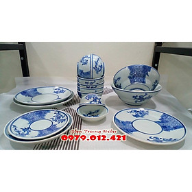 Bộ đồ ăn Bát Tràng - Sản phẩm bao gồm: 6 bát cơm, 1 mắm, 1 muối, 1 tô 16, 1 tô 18, 1 đĩa tròn 14, 1 đĩa tròn 16, 1 đĩa tròn 18,