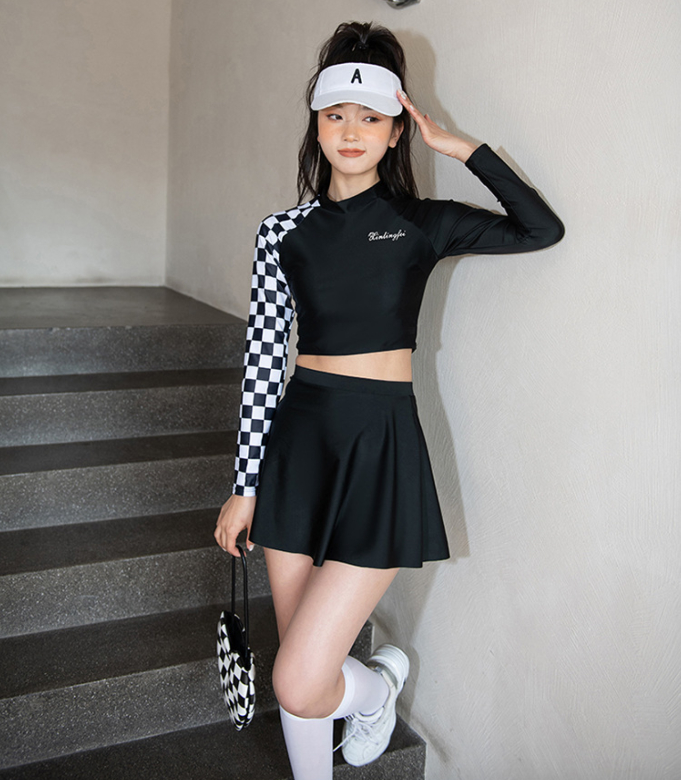 - Set gồm: áo croptop , váy (có quần đùi bên trong)