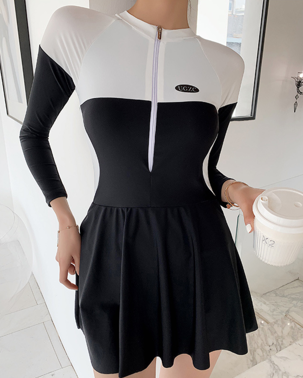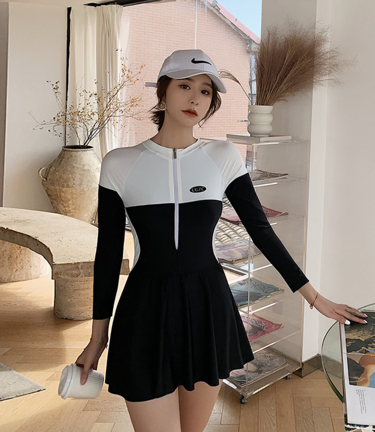 ✨Bộ đồ bơi bikini nữ 1 mảnh kín đáo đi tắm biển giấu bụng váy liền áo dài tay chống nắng - B.27