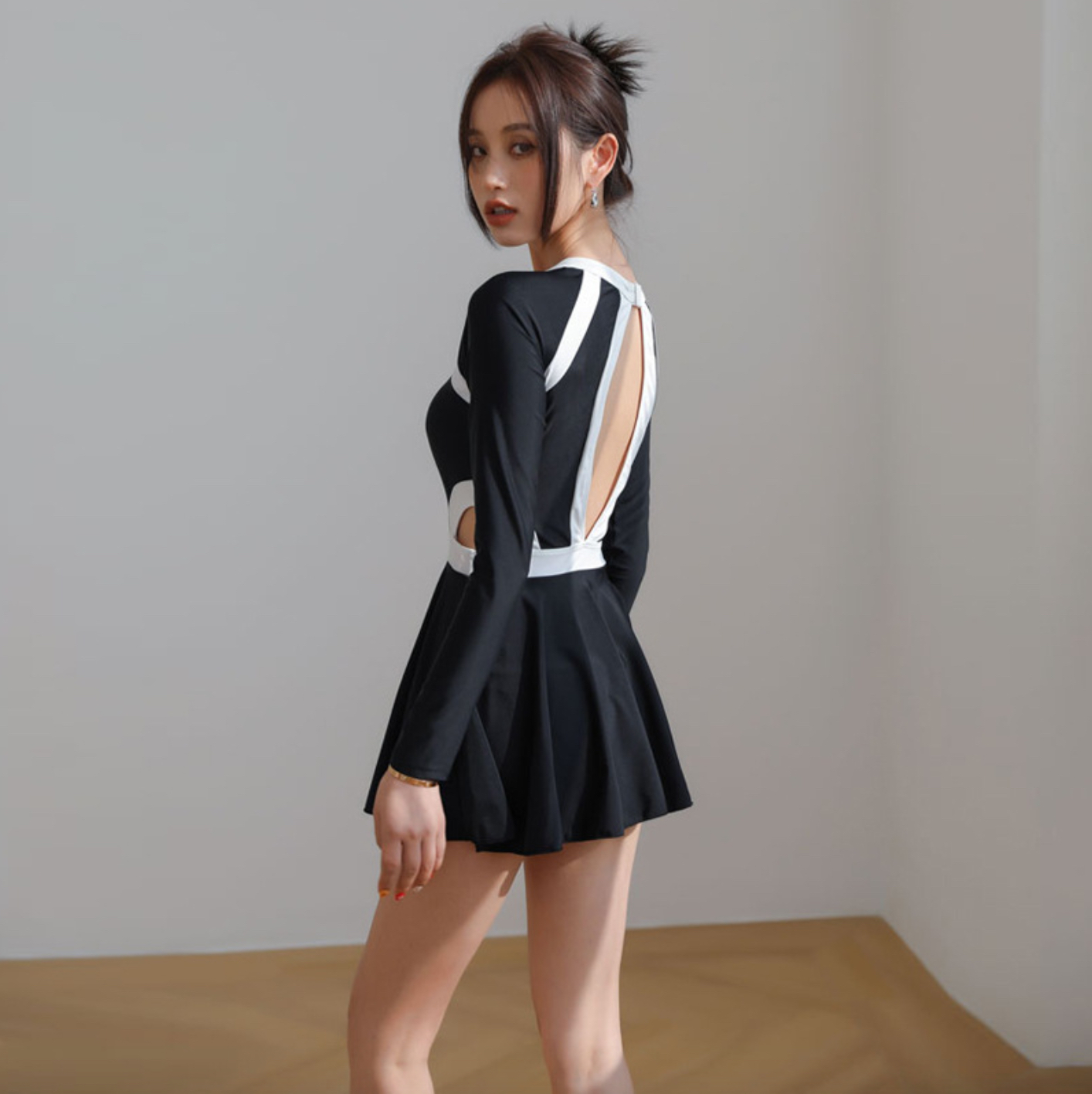 ✨Bộ đồ bơi bikini nữ kín đáo 1 mảnh đi tắm biển giấu bụng váy liền áo dài tay - B.42