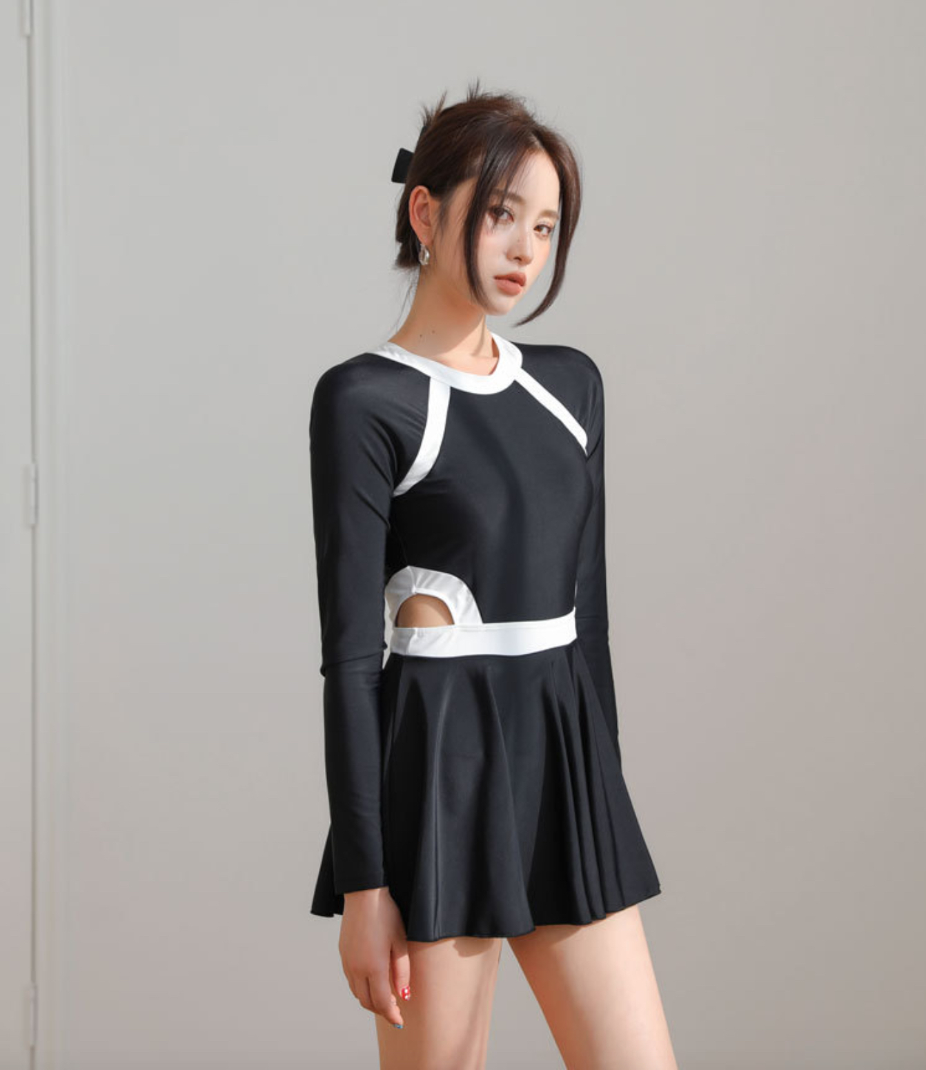 - Mẫu bikini dáng liền thân ôm sát basic với điểm nhấn cutout phần eo, tạo cảm giác vòng 2 nhỏ gọn hơn. - Cổ áo được cắt khéo, độ sâu vừa đủ để trông