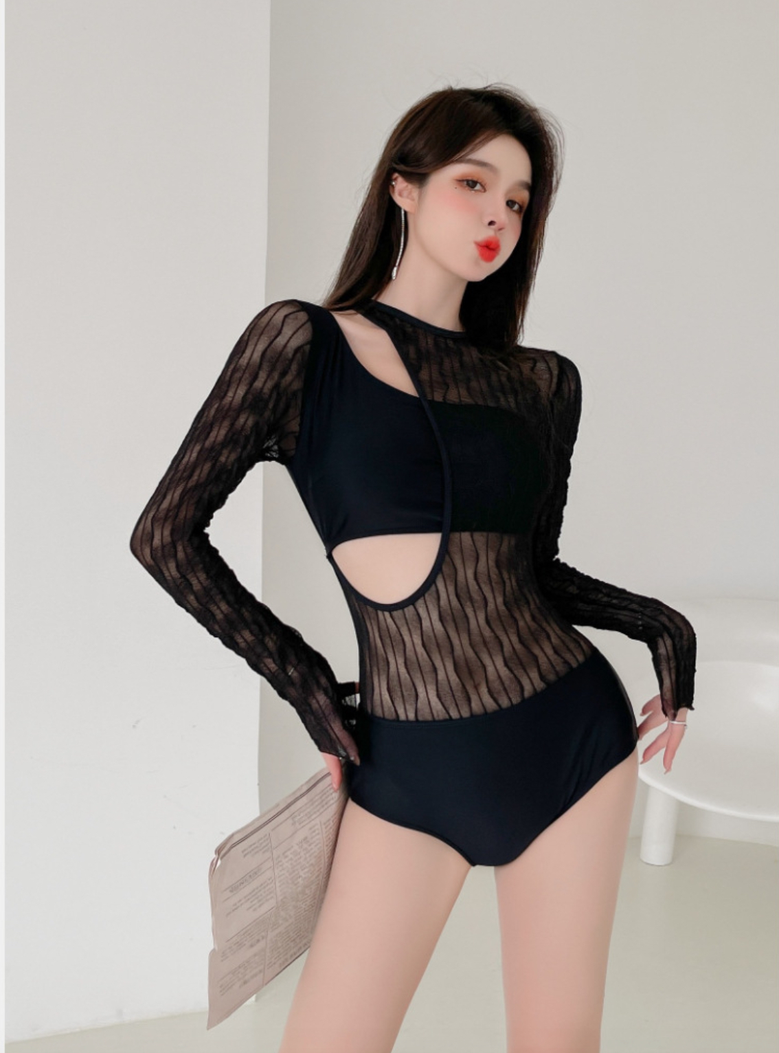 - Mẫu bikini dáng liền thân ôm sát basic với điểm nhấn cutout phần eo, tạo cảm giác vòng 2 nhỏ gọn hơn. - Cổ áo được cắt khéo, độ sâu vừa đủ để trông