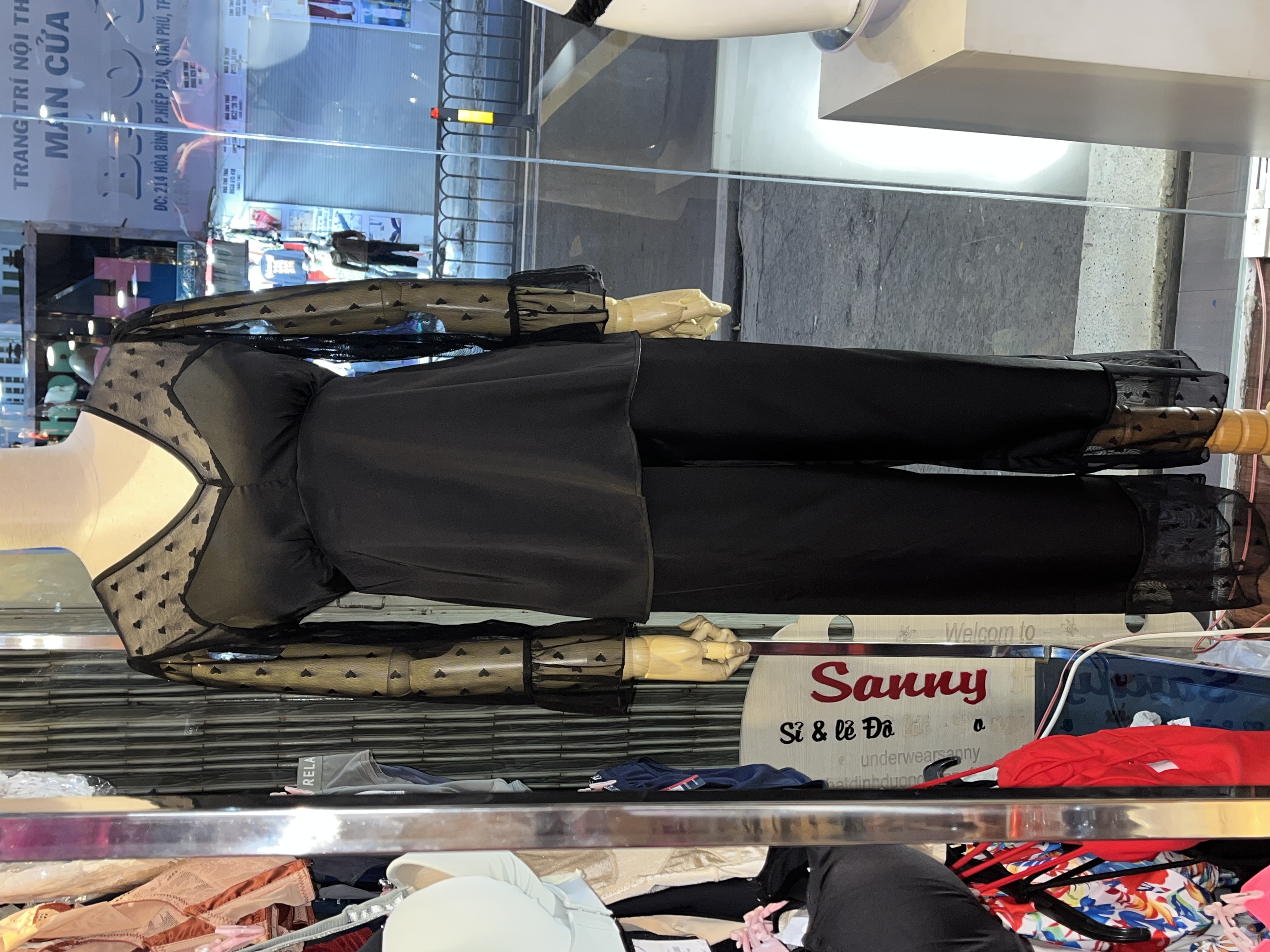 Thương hiệu: Sanny House Tên sản phẩm: Bộ đồ ngủ Chất liệu: lụa cao cấp mềm mịn, co giãn, thấm hút tốt Kiểu dáng: gợi cảm, trẻ trung, hiện đại Màu: đen Size: dưới 56kg