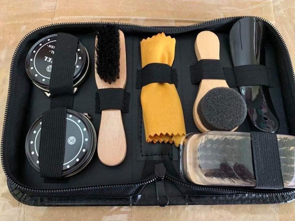 Bộ dụng cụ đánh giày 7 món kèm xi tiện lợi – Gồm đủ bộ si, cọ, nước lau giầy….xi đánh giày tiện lợi. Nhuộm và giữ màu làm sáng bóng giày dép – Bộ