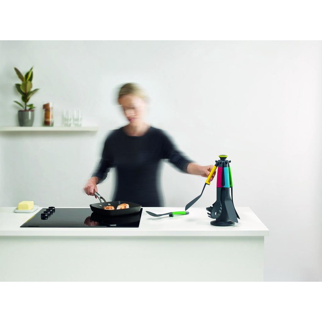 Set includes: solid spoon, stainless steel tongs, slotted turner, flexible turner, ladle and slotted spoon