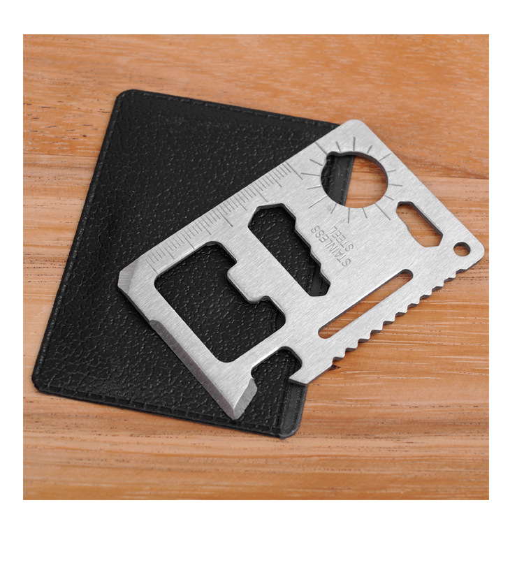 Bộ dụng cụ sinh tồn SOS bao gồm: bộ kìm đa năng như đèn pin, dao nhỏ, cưa nhỏ, kìm, đánh lửa, la bàn, dây cưa cầm tay, móc nhôm leo núi, dao đa năng.