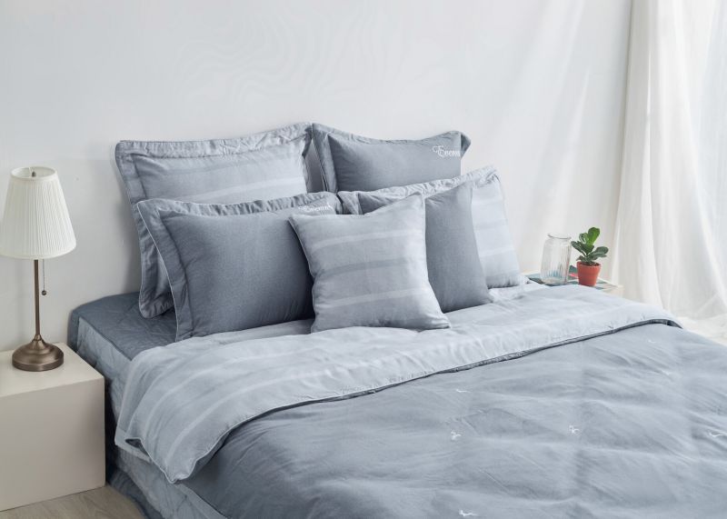 Bộ chăn ga này được kết hợp cả vải in và thêu. Họa tiết con hươu thật nhỏ được thêu điểm xuyết rải đều trên mặt chăn, tạo điểm nhấn cho bộ chăn ga không bị nhàm chán.Gam màu xanh ghi rất khéo léo tôn lên sự cuốn hút, nam tính và mạnh mẽ cho bộ sản phẩm này.