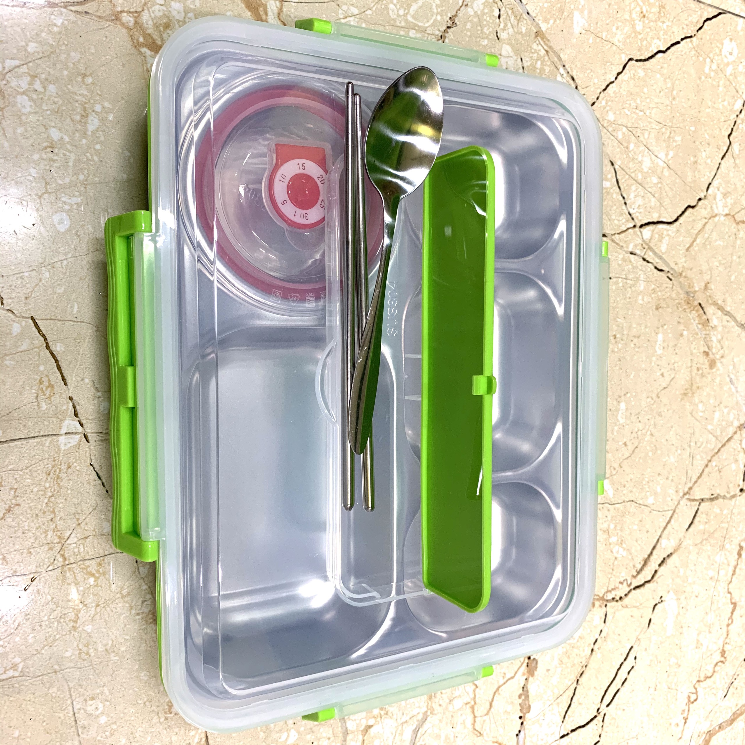 ✅ Hộp đựng cơm 5 ngăn inox 304 tiện dụng, kèm muỗng đũa inox 💰 Giá: 105k