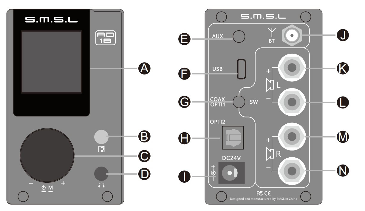 Bộ Khuếch Đại Âm Thanh S.M.S.L AD18 Full Digital Decoder Audio Amplifier Stereo Headphone Amp of 80W Power Support Optical/ BT/ Coaxial/ USB - Hàng Chính Hãng AD 18 là bộ khuếch đại bluetooth kỹ