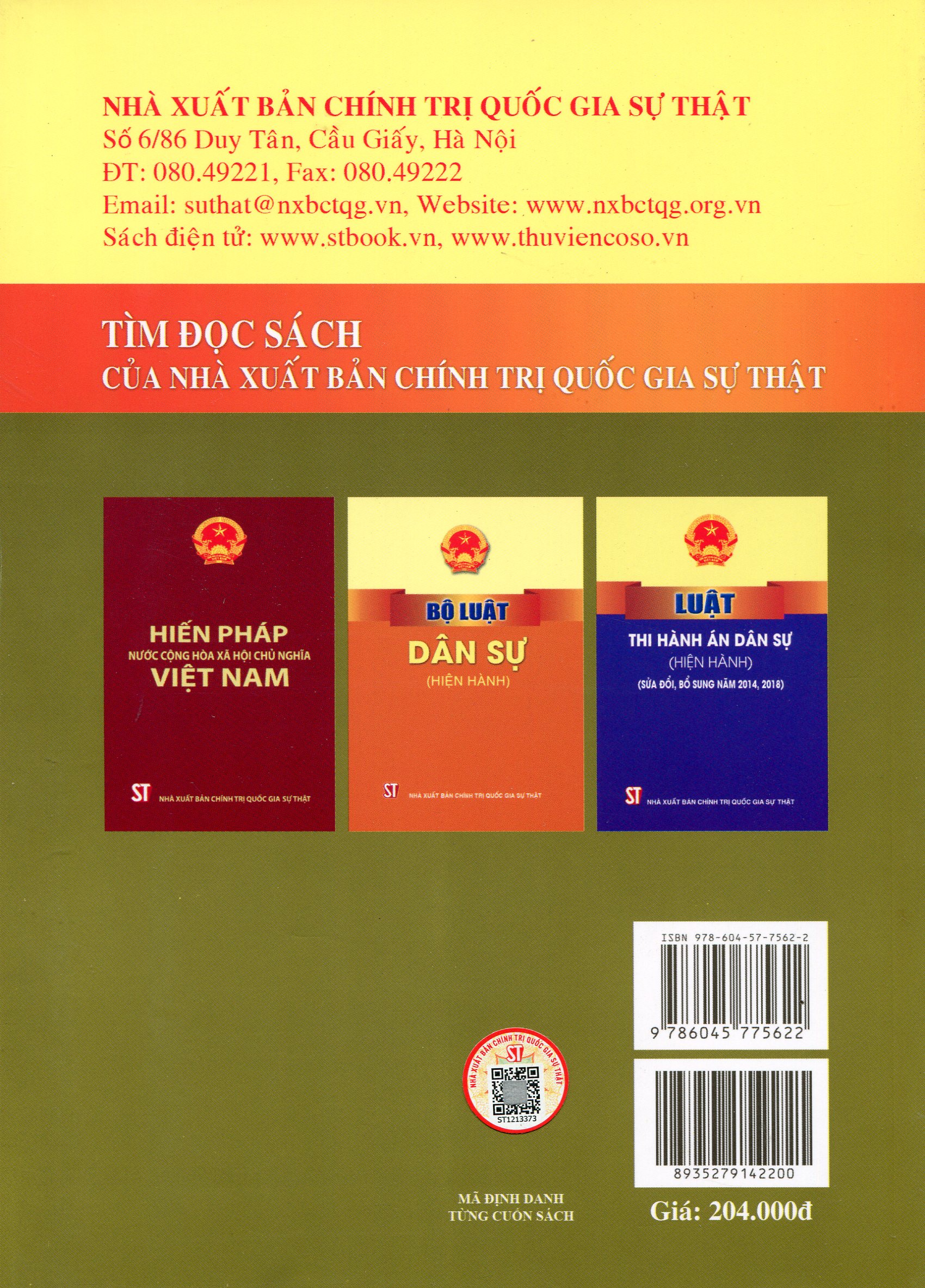 Bộ luật tố tụng dân sự (hiện hành) (sửa đổi bổ sung năm 2019, 2020, 2022, 2023) Tác giả: Quốc Hội NXB: Chính trị Quốc gia Sự thật Công ty phát hành: NXB Chính trị