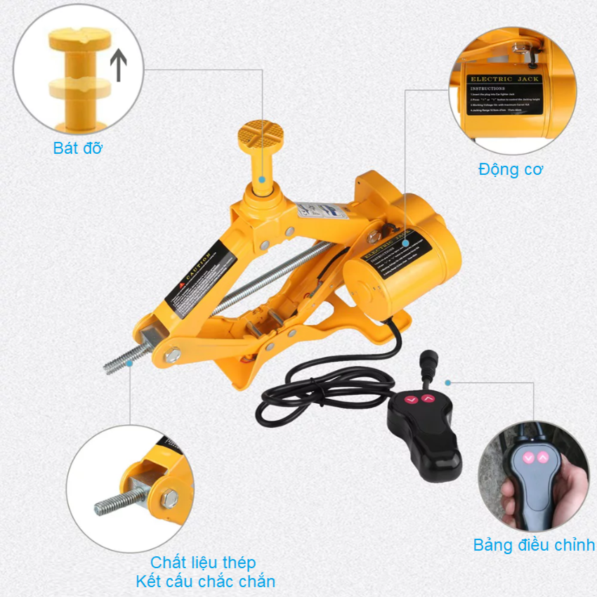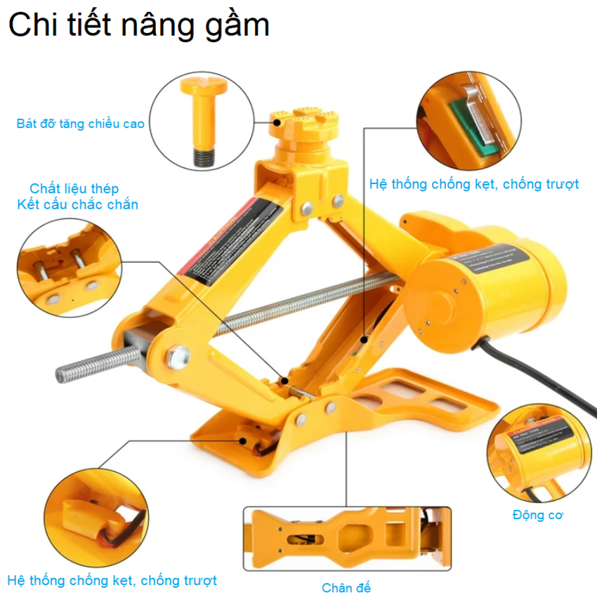 Bộ nâng kích gầm điện ô tô nhãn hiệu ROGTZ Công suất 100W, tải trọng 2000kg, Điện Áp : DC12V, dòng 10A - Hàng nhập khẩu - Bộ dụng cụ thay lốp xe ô tô