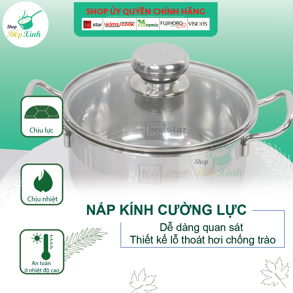 Nồi quánh bột chống dính Inox 3 đáy Fivestar 12cm/ 14cm nắp kính dùng được bếp từ Zalo 0816 505 655