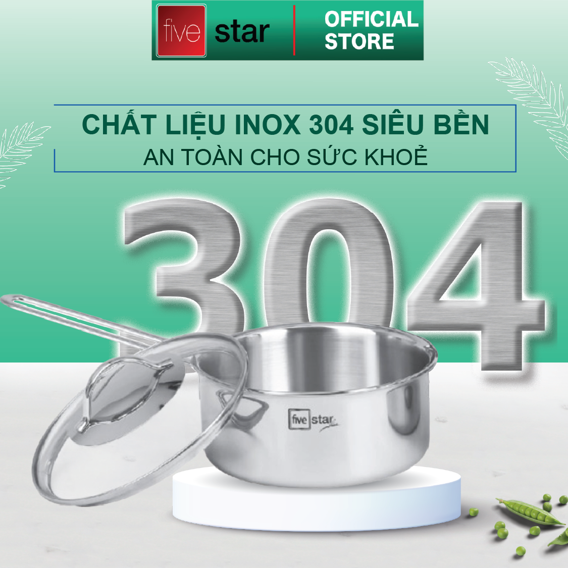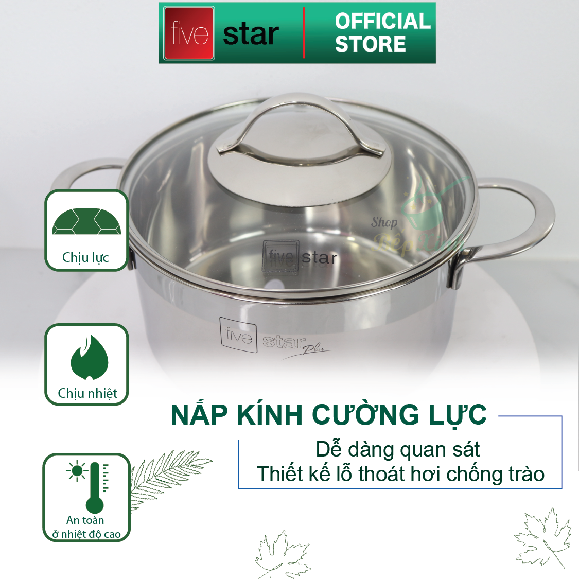 Bộ nồi Five Star Cao Cấp inox 304 Kitchi Nắp Kính mới