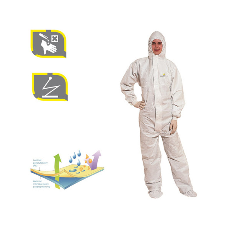 QUẦN ÁO CHỐNG HÓA CHẤT DELTAPLUS DT117 - Chất liệu: Vải không dệt DELTATEK 5000 (70% polypropylene + 30 % polyethylene) - Chống tất cả các loại bụi, vi khuẩn độc hại và hóa chất