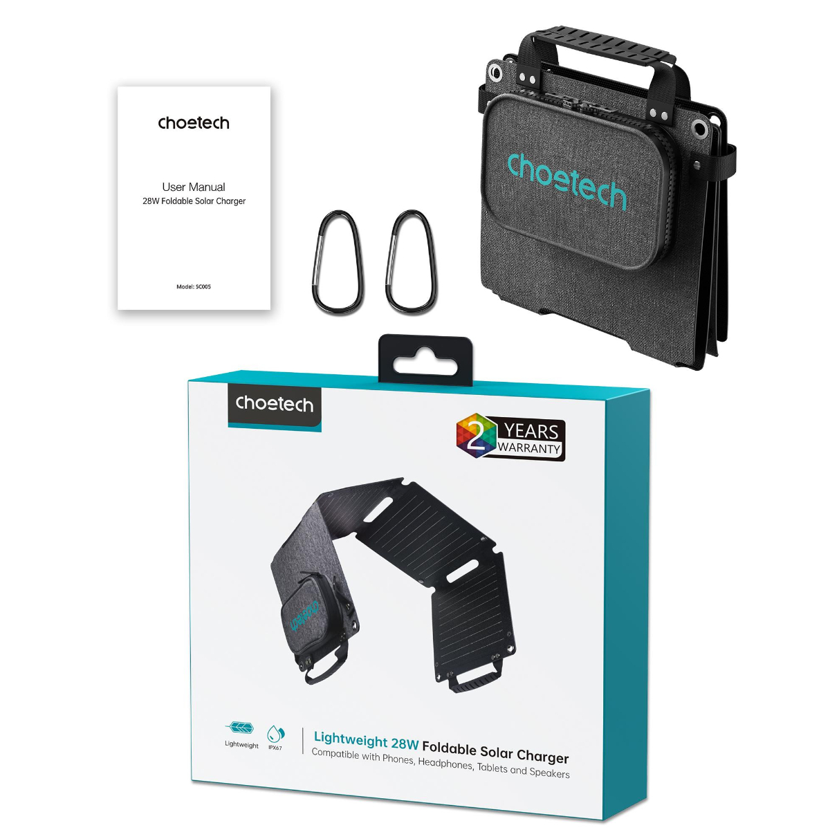 Hình ảnh Bộ sạc năng lượng mặt trời di động Choetech SC005-V5 công suất 28w có thể gấp gọn (Hàng chính hãng)