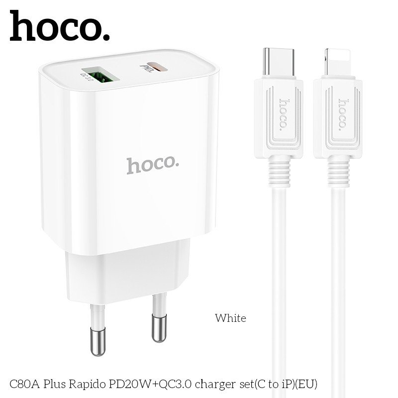 ✨Bộ Sạc Nhanh Dành Cho Hoco. C80A Plus PD20W + QC3.0 Type-C To IP Dây Dài 1m Hàng Chính Hãng