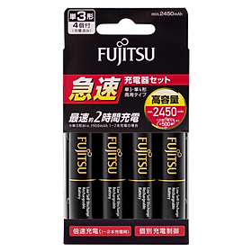 Bộ sạc nhanh Fujitsu kèm 4 pin sạc AA 2450mah | Pin sạc AA Fujitsu 2450 mah | xommoishop.com