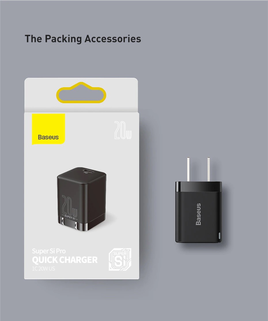 Baseus Super Si Pro Quick Charger 1 Type C 20W Cơ chế gập chân sạc nhanh gọn và chắc chắn. Chất liệu cứng cáp và bền bỉ. Sạc cực nhanh.