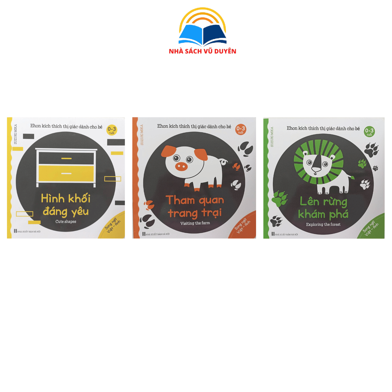 Mua tại TiktokBộ sách Ehon kích thích thị giác gồm nhiều chủ đề thú vị như Hình khối đáng yêu, Tham quan trang trại, Lên rừng khám phá, Bé đi xe nào, Xuống biển dạo chơi, Bé thích ăn quả gì?... được thiết kế đặc biệt dành cho trẻ từ 0 – 3 tuổi. Hình ảnh đơn giản, màu sắc tương phản cao (đen – trắng – đỏ – vàng – xanh) giúp kích thích thị giác và sự tập trung của bé. Nội dung gần gũi, dễ hiểu, phù hợp với giai đoạn bé bắt đầu khám phá thế giới xung quanh. Chất liệu giấy an toàn, bền đẹp, góc bo tròn an toàn cho bé. Giúp bé phát triển khả năng nhận biết, tư duy ngôn ngữ, trí tưởng tượng và sự tương tác với cha mẹ. Đây là bộ sách lý tưởng cha mẹ nên có để đồng hành cùng bé trong giai đoạn đầu đời, vừa học vừa chơi, tạo nền tảng phát triển toàn diện. THÔNG TIN CHI TIẾT BỘ SÁCH - Ehon kích thích thị giác dành cho bé 0-3 tuổi (Bộ 6 cuốn) ✪ Tên tác giả: Suzuki Mika ✪ Nhà phát hành: Công ty TNHH MTV Sách và thiết bị giáo dục Việt Hà ✪ Nhà xuất bản: NXB Hà nội ✪ Ngôn ngữ: Tiếng Việt ✪ Ngày xuất bản: 2021 ✪ Số trang: 18 trang/1 cuốn ✪ Loại bìa: Bìa mềm