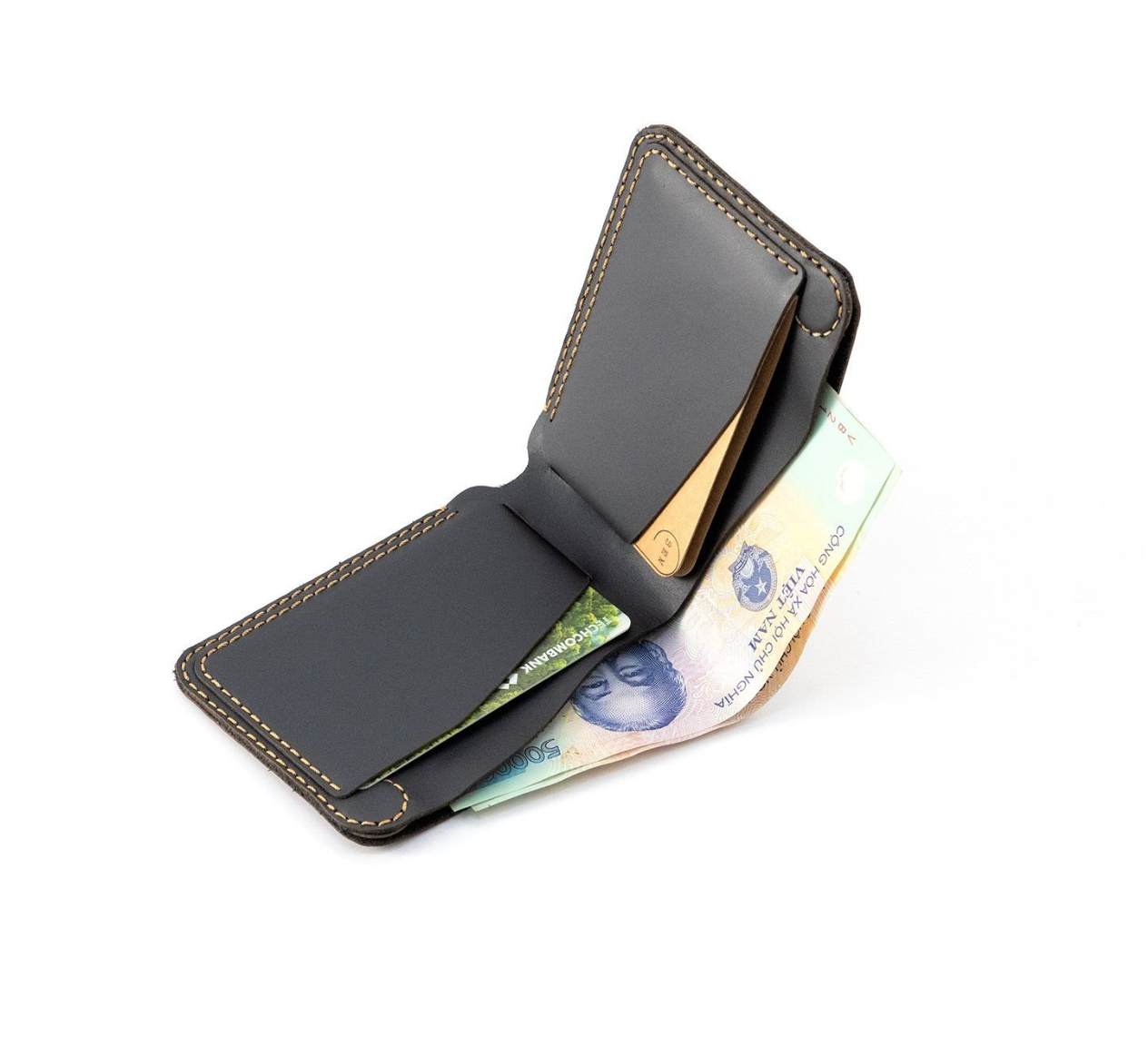 CARD HOLDER HANDMADE 2 - Size : 11 x 8 x 2cm ( D x C x R ) vừa giấy tờ cũ - Chất liệu : da bò Alran bên trong lót da bò