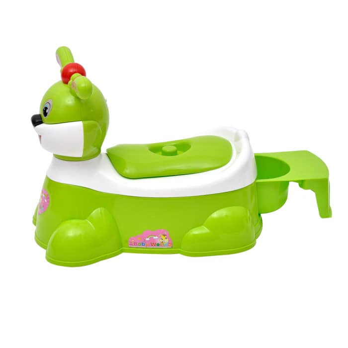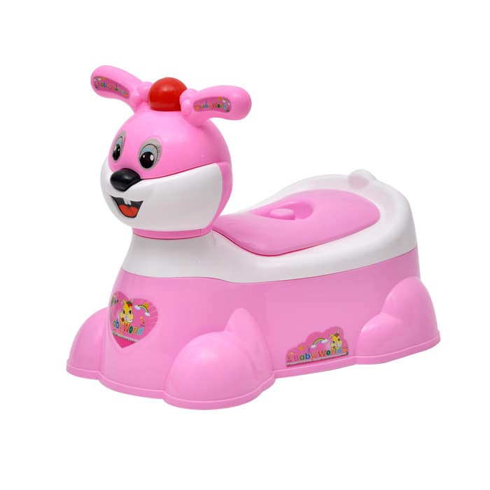 - Hình còn thỏ rất đáng yêu, bên trên có phần tay vịn giúp những bé đang tập đi, đi chưa vững có thể cầm vào và vịn đứng lên được ( phần tay cầm này chính là tai con thỏ đó nhé ) . Bô này thiết kế phần ngồi rất rộng và vững nên mẹ hoàn toàn yên tâm cho bé tự ngồi, không phải đỡ cũng như trông trong quá trình bé đi vệ sinh